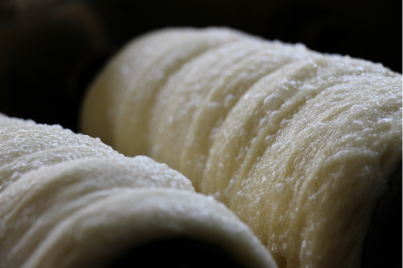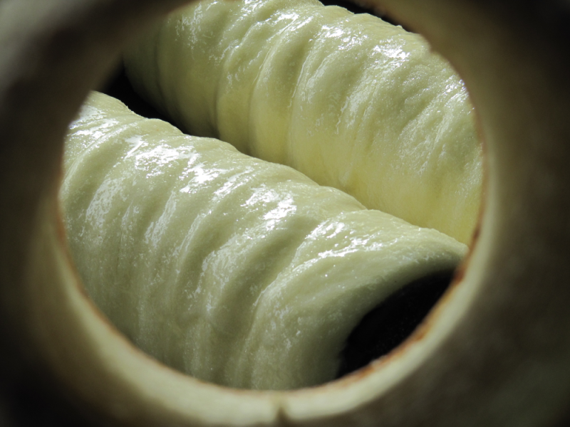 of raised dough that has to be wound in a helix shape around a baking spit, and brushed