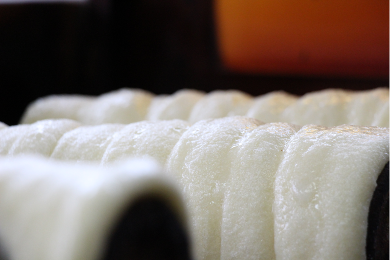 Kürtőskalács is made from sweet, yeast dough (raised dough), of which a strip is